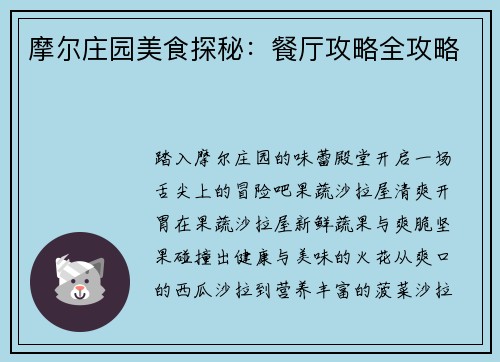 摩尔庄园美食探秘:餐厅攻略全攻略